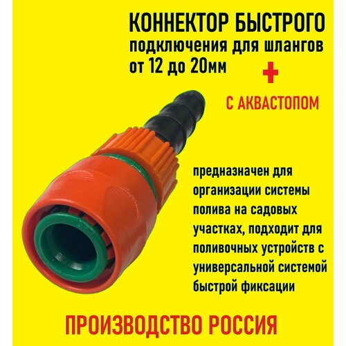 Коннектор быстрого подключения для шлангов 10-20мм с аквастопом