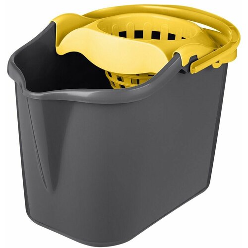 Ведро пластмассовое "Grenada" 13л, 39х27х27,8см, серый/ярко-желтый, с отжимом МОП, Idiland