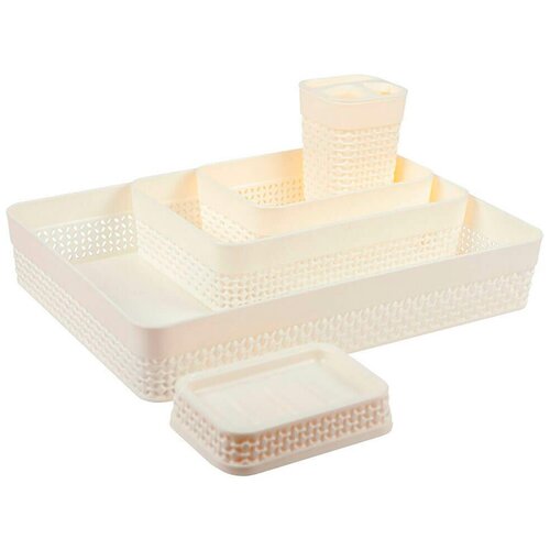 Набор для ванной комнаты Plast Team OSLO Comfort 5 предметов для хранения вещей 337х238х8о мм молочный