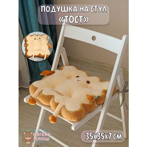 Подушка декоративная сидушка на стул Тост c улыбкой I am toast квадратный 35x35x7