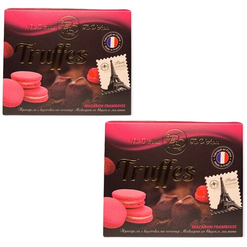 Трюфели 2 упаковки CHOCOLAT MATHEZ с кусочками печенья Макарон со вкусом малины, 160 г