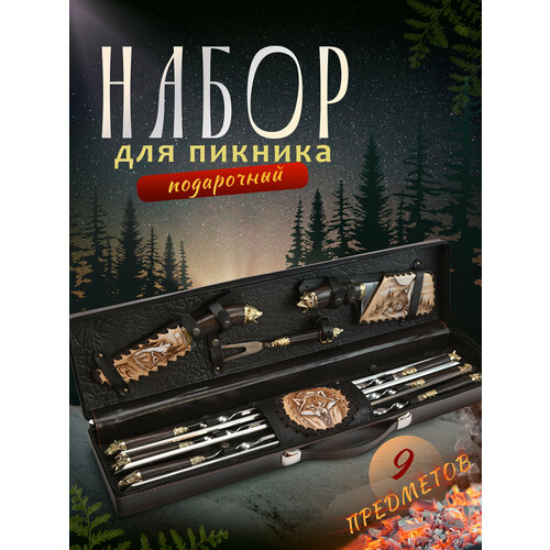 Подарочный набор для шашлыков, пикника "Путник-1", шампуры в кейсе, подарок мужчине