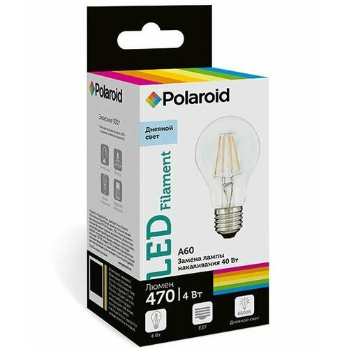 Светодиодная лампа Polaroid 220V FIL A60 4W 6500K E27 470lm