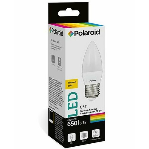 Светодиодная лампа Polaroid 220V C37 8W 3000K E27 650lm