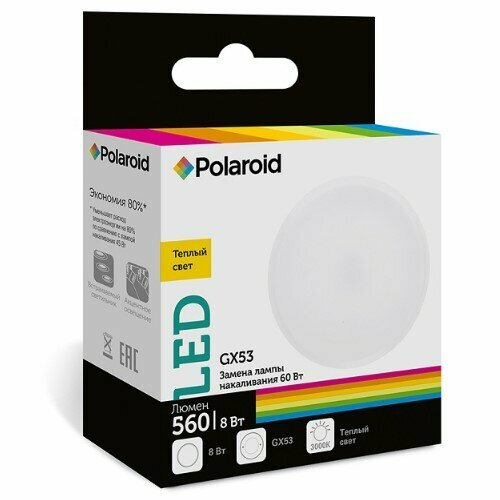 Светодиодная лампа Polaroid 220V GX 8W 3000K GX53 560lm