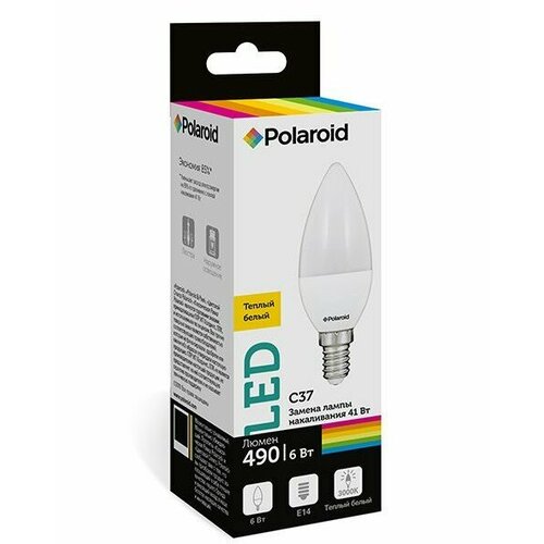 Светодиодная лампа Polaroid 220V C37 6W 3000K E14 490lm