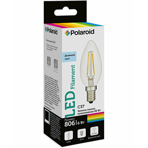 Светодиодная лампа Polaroid 220V C37 FIL 6W 6500K E14 806lm
