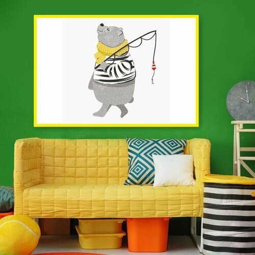 Постер для интерьера Медведь С Удочкой на стену для детской горизонтальный 40х30 см в тубусе ПолиЦентр