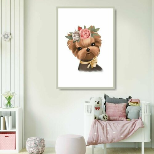 Постер Собачка С Цветами Для Детской Тип 2 Вертикальный 60х90 см в тубусе ПолиЦентр