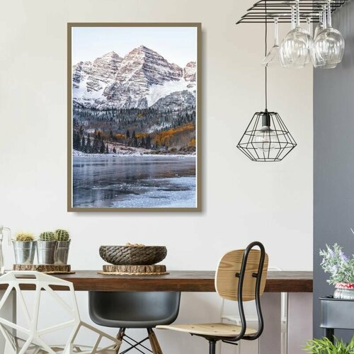 Постер Зимняя Река На Фоне Горы 60х90 см в тубусе ПолиЦентр
