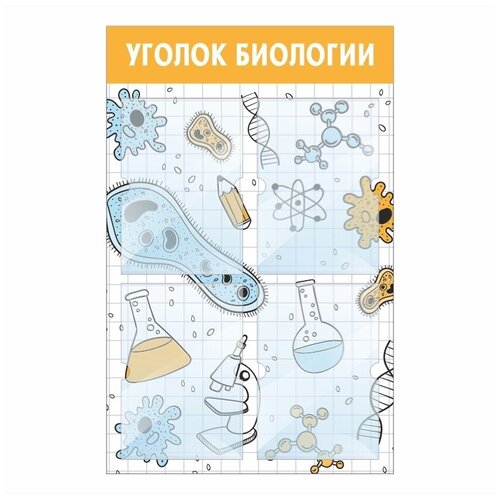 Стенд информационный "Уголок Биологии" 500х780 мм с 4 карманами А4 производство "ПолиЦентр"