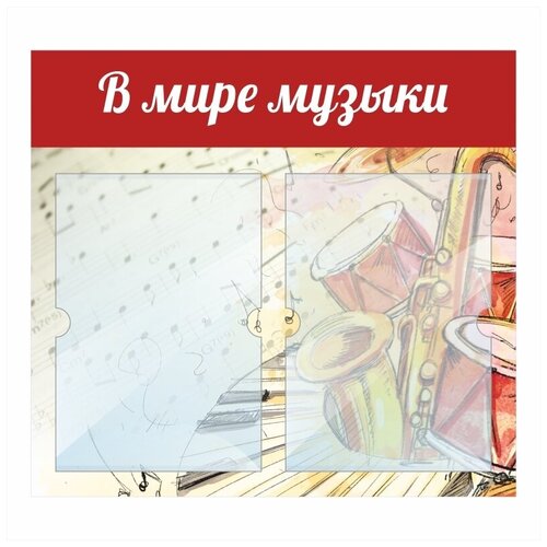 Информационный стенд "В Мире Музыки" 500х460 мм с 2 карманами А4 производство "ПолиЦентр"