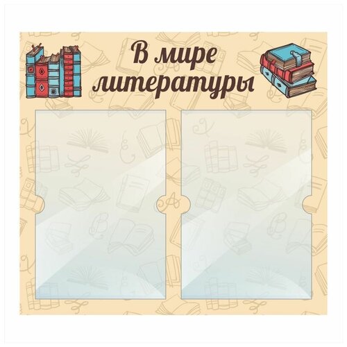 Стенд информационный "В Мире Литературы" 500х460 мм с 2 карманами А4 производство "ПолиЦентр"