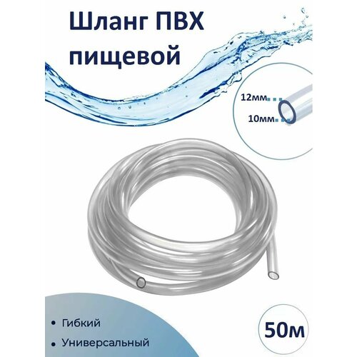 Шланг прозрачный пищевой (капиллярная трубка) ПВХ 10х12 мм (50 м)