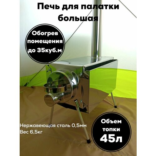 Печь туристическая большая для палатки бани дачи гаража кемпинга бытовки с 3д экранами на 45л