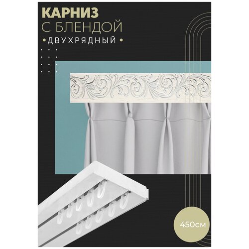 Карниз с блендой Ажур Кар. Бер. двухрядный потолочный для штор 450 см, ПоставщикоФФ