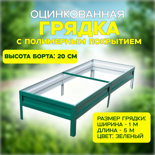 Грядка оцинкованная с полимерным покрытием, высота 20 см, размер 1 х 5 м, мох