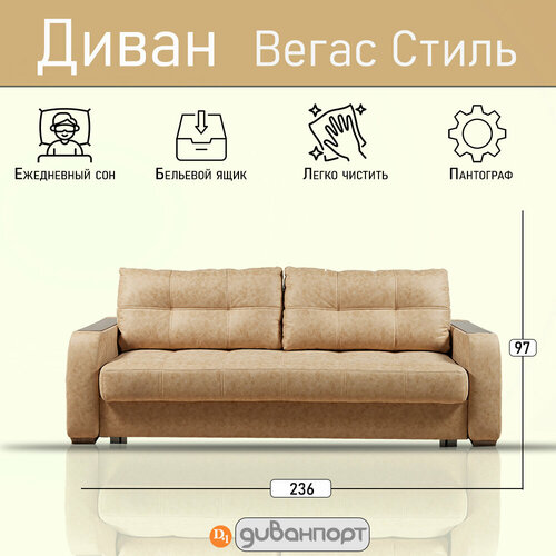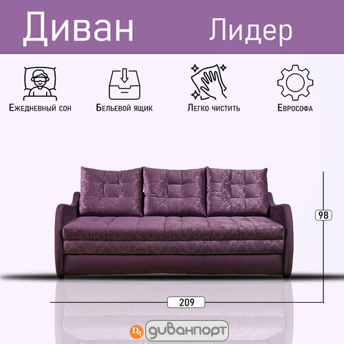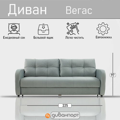 Прямой диван, Диван-кровать Надежда Bergamo35, механизм Книжка, пружинный блок, 215х100х95
