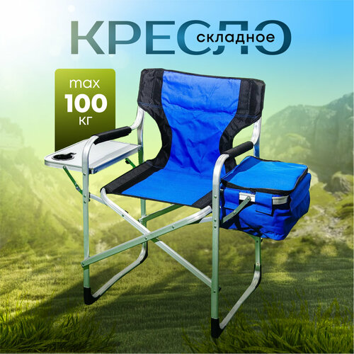 Кресло складное 56х64х91 см, синее, ткань, со столиком, с карманом, 100 кг, Y9-028