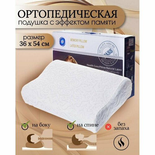 Подушка ортопедическая, 36 х 54 см, латекс, чехол 100% полиэстер, с эффектом памяти, мягкая, Y6-1909