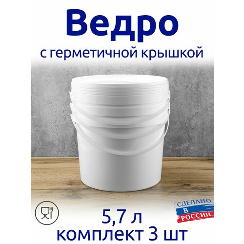 Ведро 5,7 л с герметичной крышкой, комплект 3 шт. для меда, солений, варенья, шашлыка, для засолки