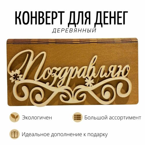 Конверт для купюр деревянный на День Рождение, на Свадьбу m143