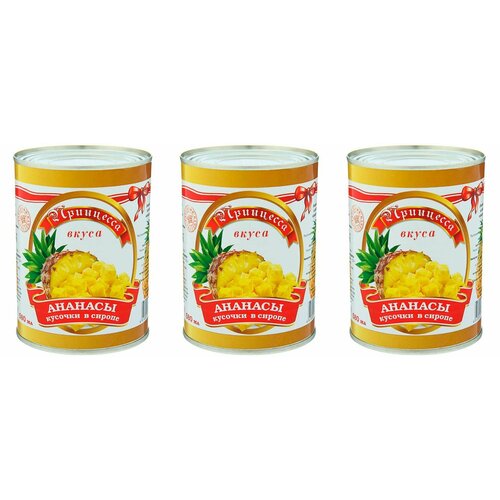 Ананасы кусочками Принцесса вкуса в сиропе банка жестяная, 100 г, 580 мл