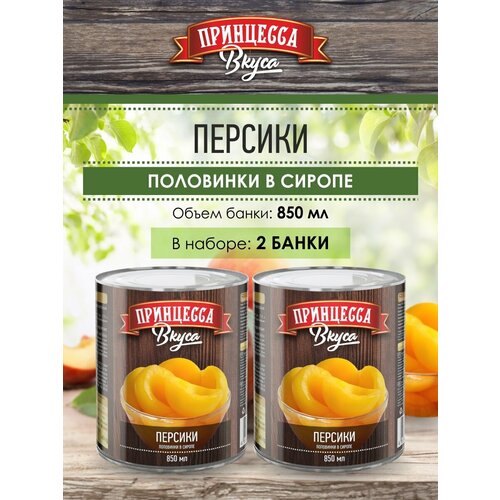 Персики в сиропе "Принцесса вкуса", половинки, 2 шт. по 850 г