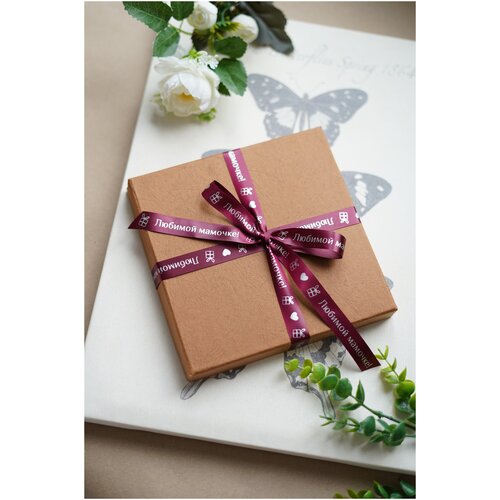 Лента декоративная атласная с печатью Любимой мамочке бордовый/серебро из сатина, ширина 15 мм, длина 5 м