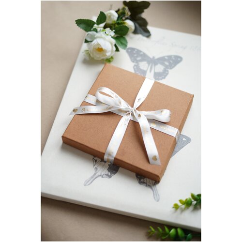 Лента декоративная атласная с печатью С днем рождения белый/золото из сатина, ширина 15 мм, длина 5 м