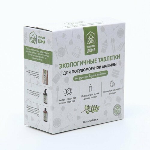 Эко-таблетки для посудомоечных машин "Природа Дома", натуральные, забота о здоровье семьи, 30шт.
