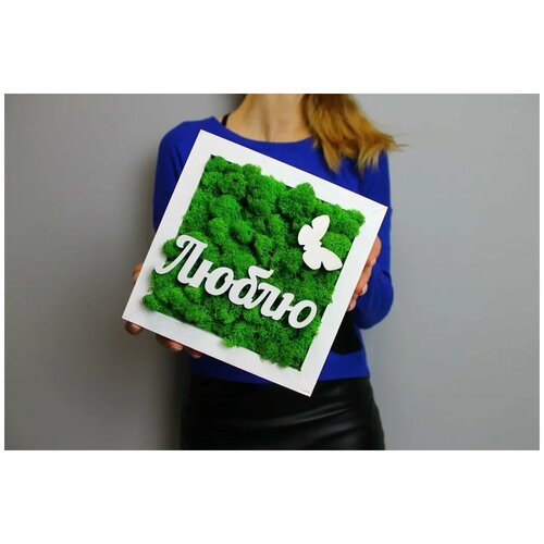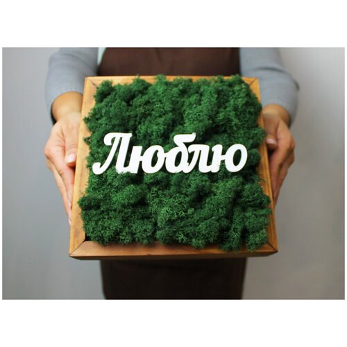Живая эко-картина для интерьера 20х20см с надписью "Люблю", коричневый/тёмно-зелёный