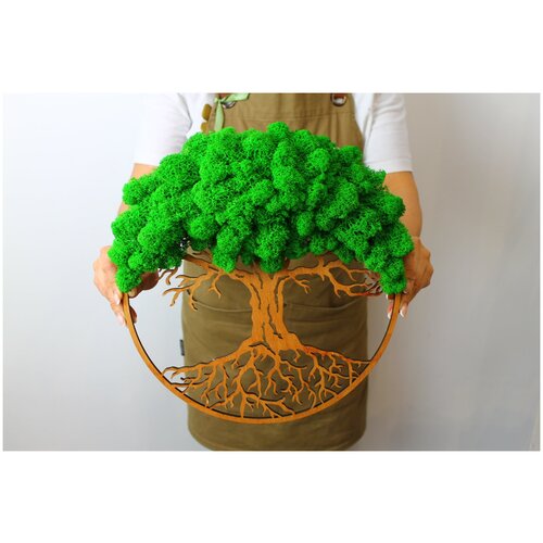 Эко-картина из стабилизированного мха "Древо жизни", 30см, орех/зелёное яблоко