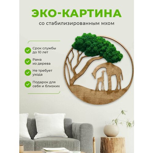 Эко-картина из мха "Древо", 50см, орех/форест грин