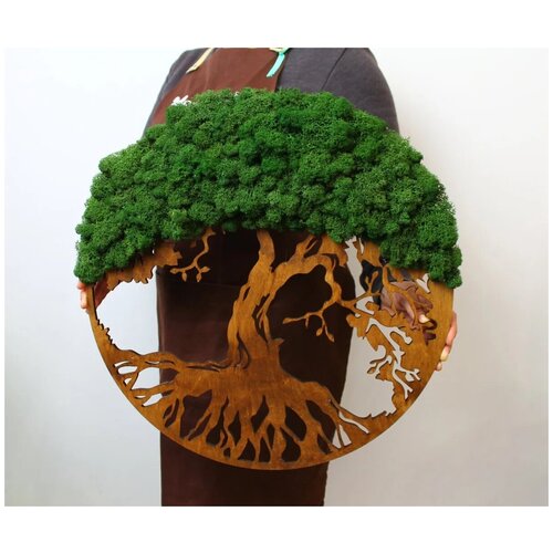 Панно из стабилизированного мха "Дерево", 50см, палисандр/темно-зелёный