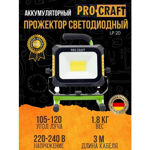 Прожектор строительный светодиодный с аккумулятором Procraft LP20 (без АКБ и ЗУ)