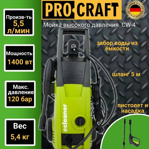 Мойка высокого давления ProCraft CW-4, 1400Вт, 120 бар, возможность всасывания