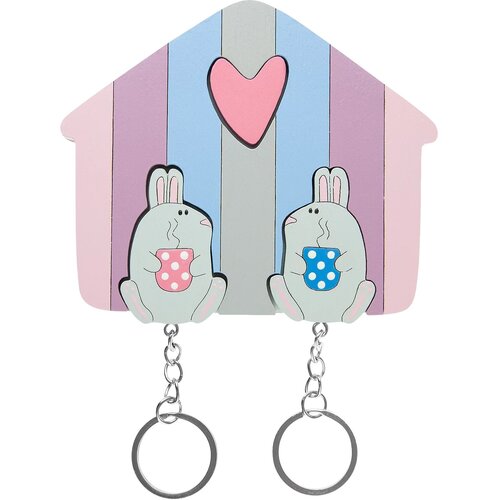 Ключница деревянная на два ключа Хлэб Ангел пастель