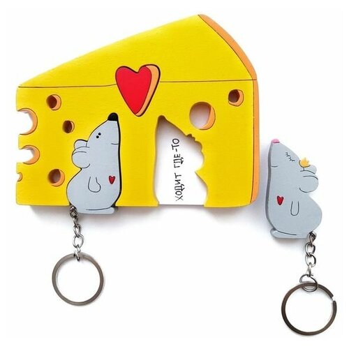 Ключница деревянная на два ключа Хлэб Коржик Вжик