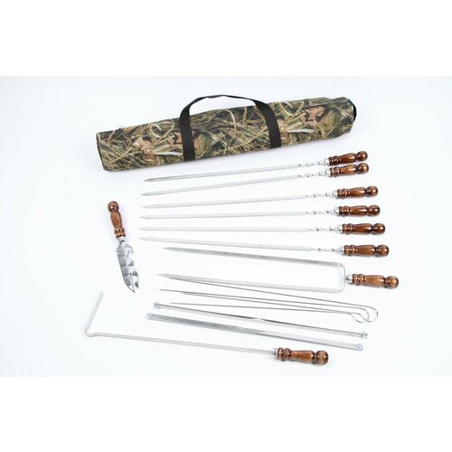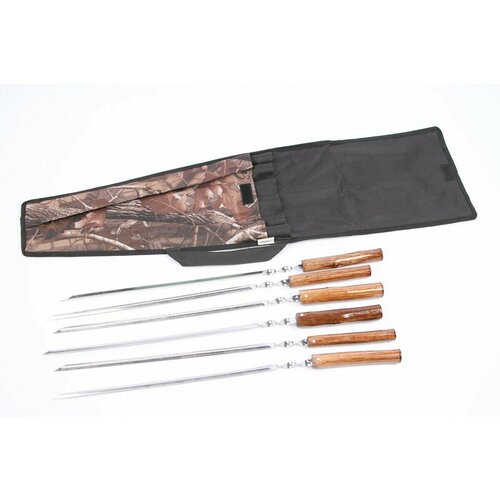 Набор шашлычный в тубусе эконом (камуфляж) с 6 шамп. нерж. с дер. лак. ручкой Шар малый