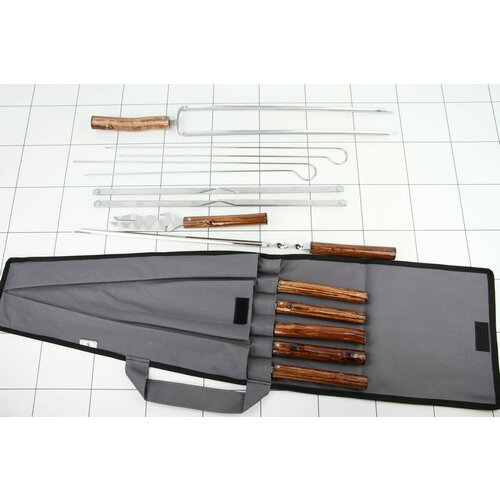 Набор шашлычный в колчане эконом с 6 шамп. нерж. с дер. лак. ручкой Шар малый+нож+вилка-шамп.+таг.+шам. г