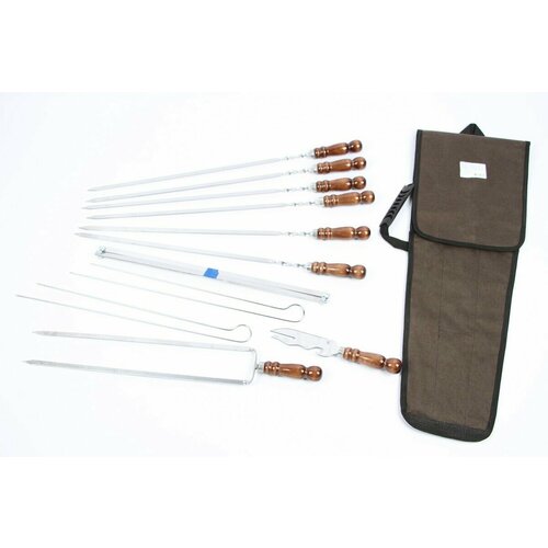 Набор шашлычный в колпачке эконом с 6 шамп. с дер. ручкой ЭКО+вилка-шамп.+нож+таганок+шампур грибы