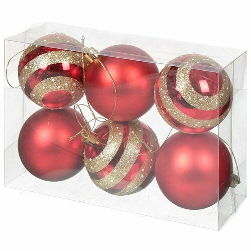 Игрушки елочные (шар) 7 см по 6 штук (красные)