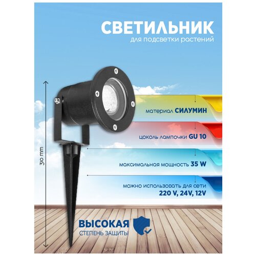 Светильник для подсветки растений черный на колышке JTS-107 (архитектурный)