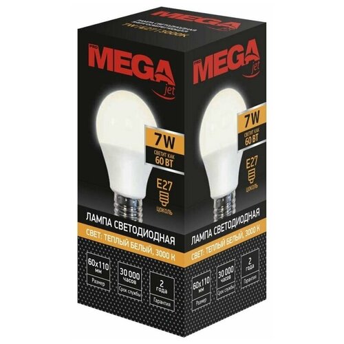 Лампа светодиодная Mega E27 7W 3000K груша