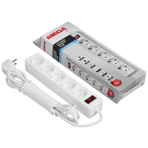 Удлинитель ProMEGA jet p494, 5 розеток, с/з, 10А / 2200 Вт 1.8 м 5