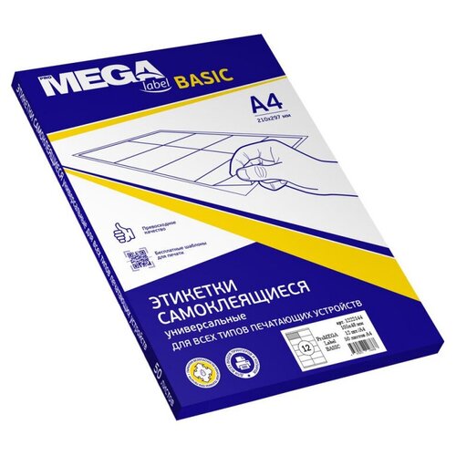 Этикетки самокл. ProMEGA Label BASIC 70х67,7 мм, 12 шт. на лист. А4 100л