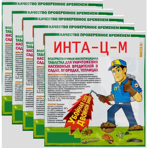 Таблетки "ИНТА-Ц-М" от колорадского жука, тли, белокрылки, 5x8 г. Применяется для защиты растений от садовых вредителей, имеет пролонгированный эффект