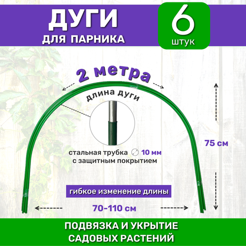 Садовые дуги для парника, грядок и растений (6 штук), длина 2 м, диаметр 10 мм, металлические в ПВХ