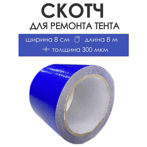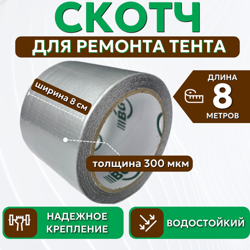 Скотч для ремонта тентов тарпаулин "PROTENT", размер 8 см х 8 м, толщина 300 мкм, клейкая лента для тентовой ткани, брезента, палатки, шатра, бассейна